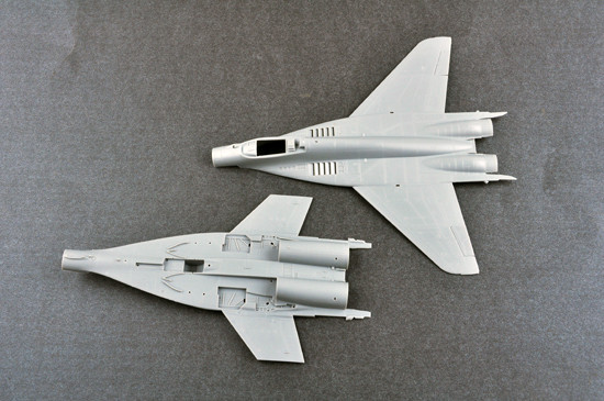 Since the Mig-29A were in service,the limited fuel capacity was the biggest problem of this light tactical fighter.To meeting the specified range requirements,the designers of Mikoyan developed a project to enlarge the fuselage tank.But the special dorsal auxiliary air intakes cause that only the tank in the spine could be readily enlarged;its capacity was increased by 240 litres.The enlarged fuselage tank made the upper fuselage contour became convex instead of concave.Besides,the application of new pylons allows another two drop tanks be fitted under the wings.Fitting three drop tanks gave the fighter a ferry range of 3000km.