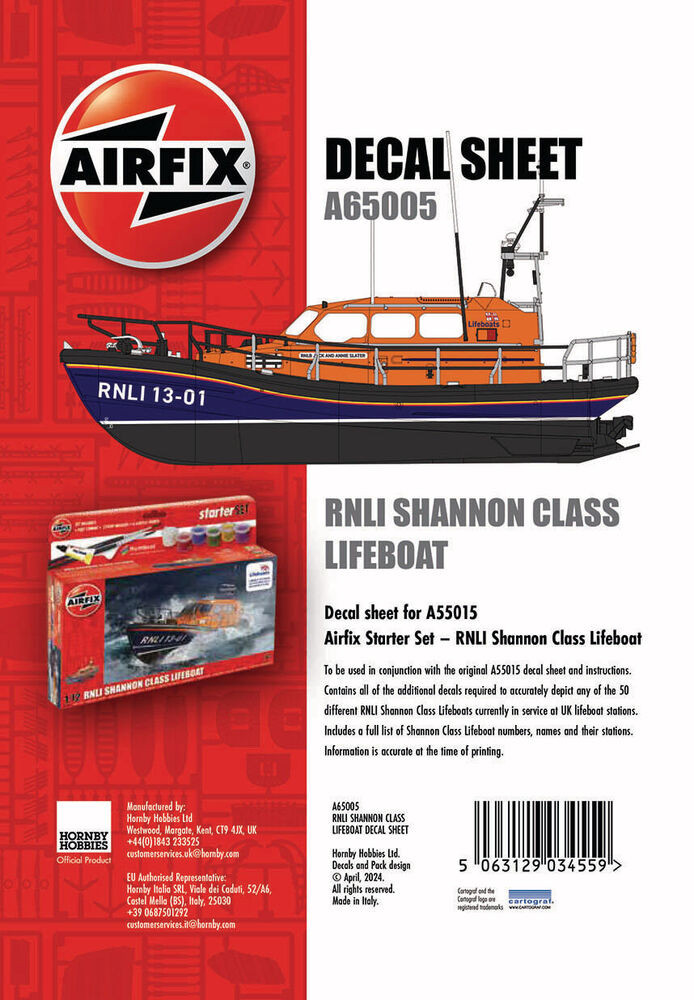 Airfix Decal Sheet - RNLI Shannon Class Lifeboat (A55015) 1:72 (A65005) Airfix Decal Sheet - RNLI Shannon Class Lifeboat (A55015) 1:72 (A65005)