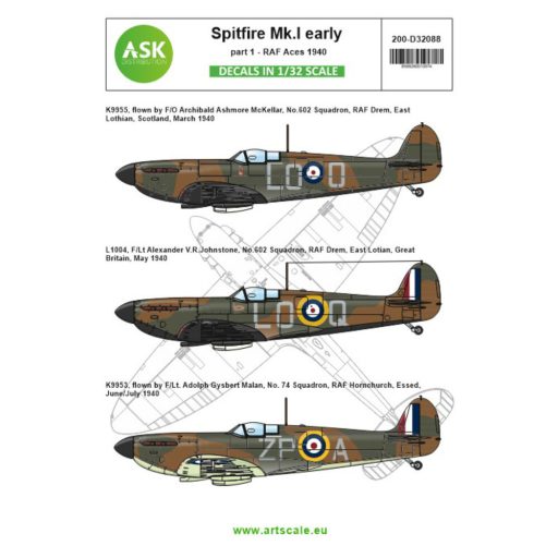 Art Scale Kit Spitfire Mk.Ia part 1 - The Few, 1940 RAF Aces 1:32 (200-D32088)