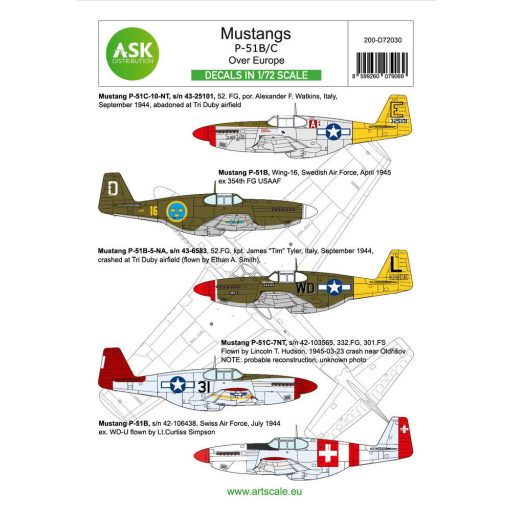 Art Scale Kit P-51B Mustang part 1 - Europe. The Bastards behind the enemy lines and in foreign services 1:72 (200-D72030)