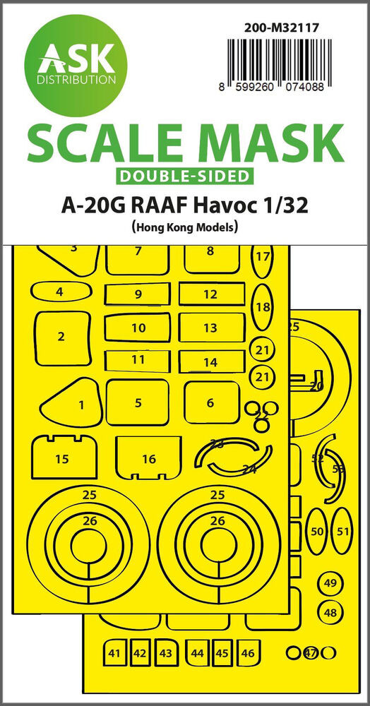 Art Scale Kit A-20G RAAF Havoc double-sided express fit mask for HK Models 1:32 (200-M32117)