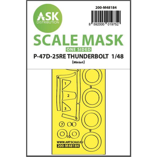 Art Scale Kit P-47D-25RE Thunderbolt one-sided express fit mask for Miniart 1:48 (200-M48184)