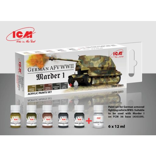 ICM Acrylic paint set for German AFV WW2 (Marder I) 6 x12 ml  (3003)