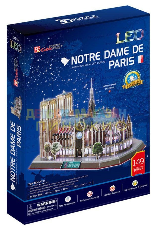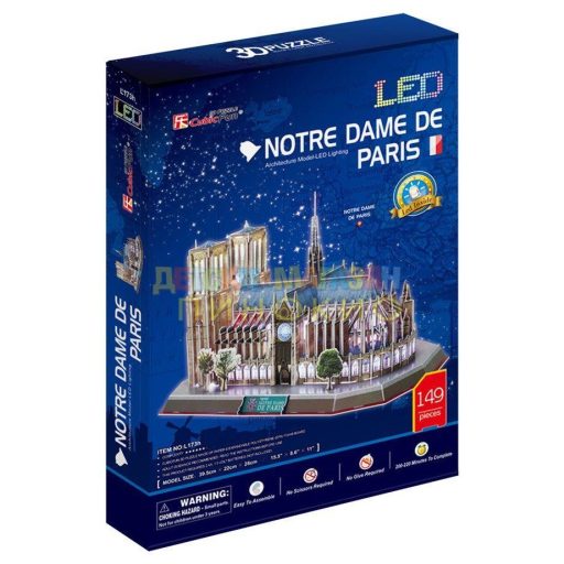 CubicFun Notre Dame de Paris LED Light 3D Puzzle L173h
