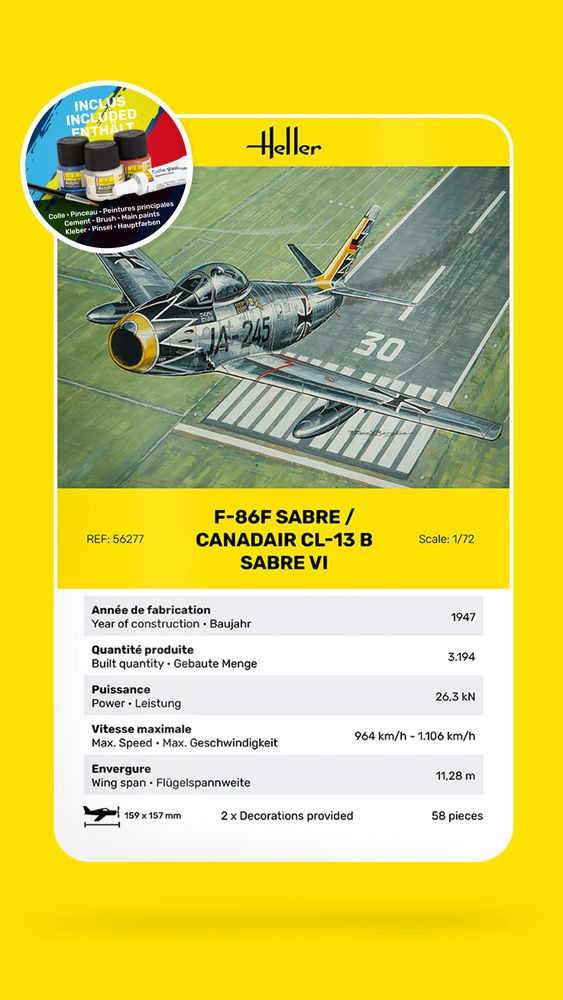 Heller STARTER KIT F-86F SABRE / CANADAIR CL-13 B Sabre VI 1:72 (56277)