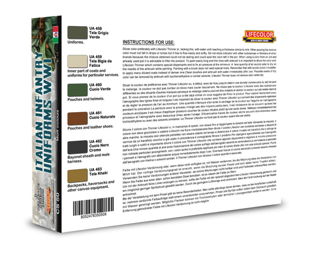 Lifecolor Italian Infantry Uniforms WWI 6 x 22 ml (CS50)