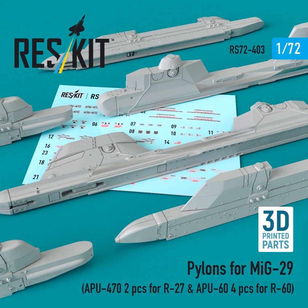 ResKit Models Pylons for MiG-29 (APU-470 2 pcs for R-27 & APU-60 4 pcs for R-60) (3D Printed) 1:72 (RS72-0403)