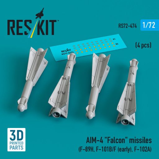ResKit Models AIM-4 Falcon missiles (4 pcs) (F-89H, F-101B/F (early), F-102A) (3D Printed) 1:72 (RS72-0474)