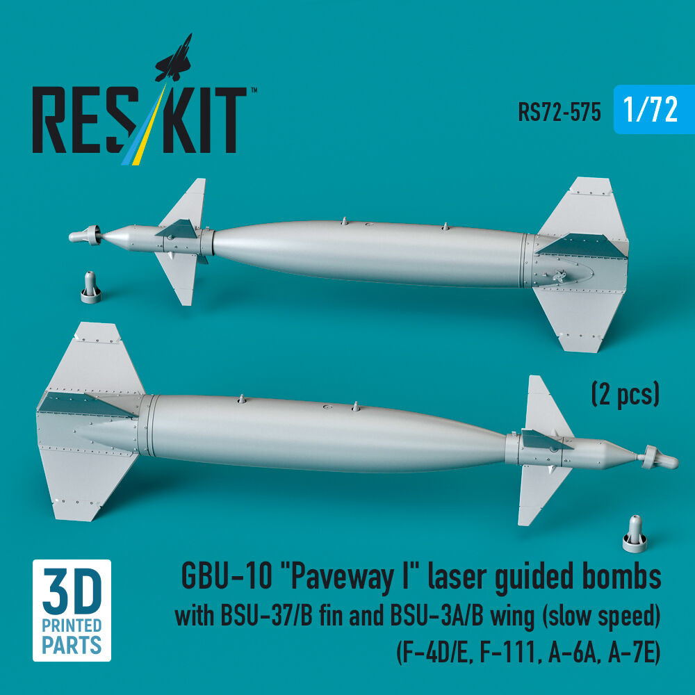 ResKit Models GBU-10 Paveway I laser guided bombs with BSU-37/B fin and BSU-3A/B wing (slow speed) (2 pcs) (F-4D/E, F-111, A-6A, A-7E) (3D Printed) 1:72 (RS72-0575)