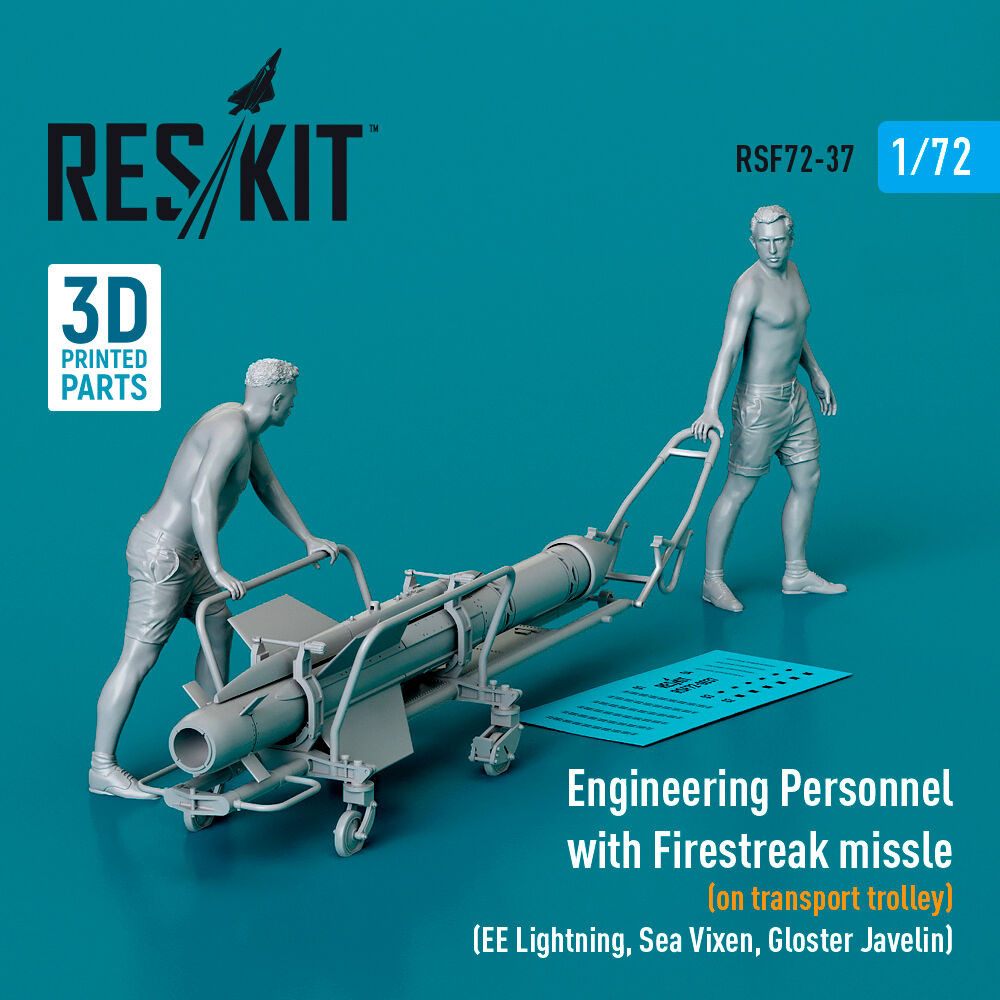ResKit Models Engineering Personnel with Firestreak missile (on transport trolley) (EE Lightning, Sea Vixen, Gloster Javelin) (1 pcs) (3D Printed) 1:72 (RSF72-0037)